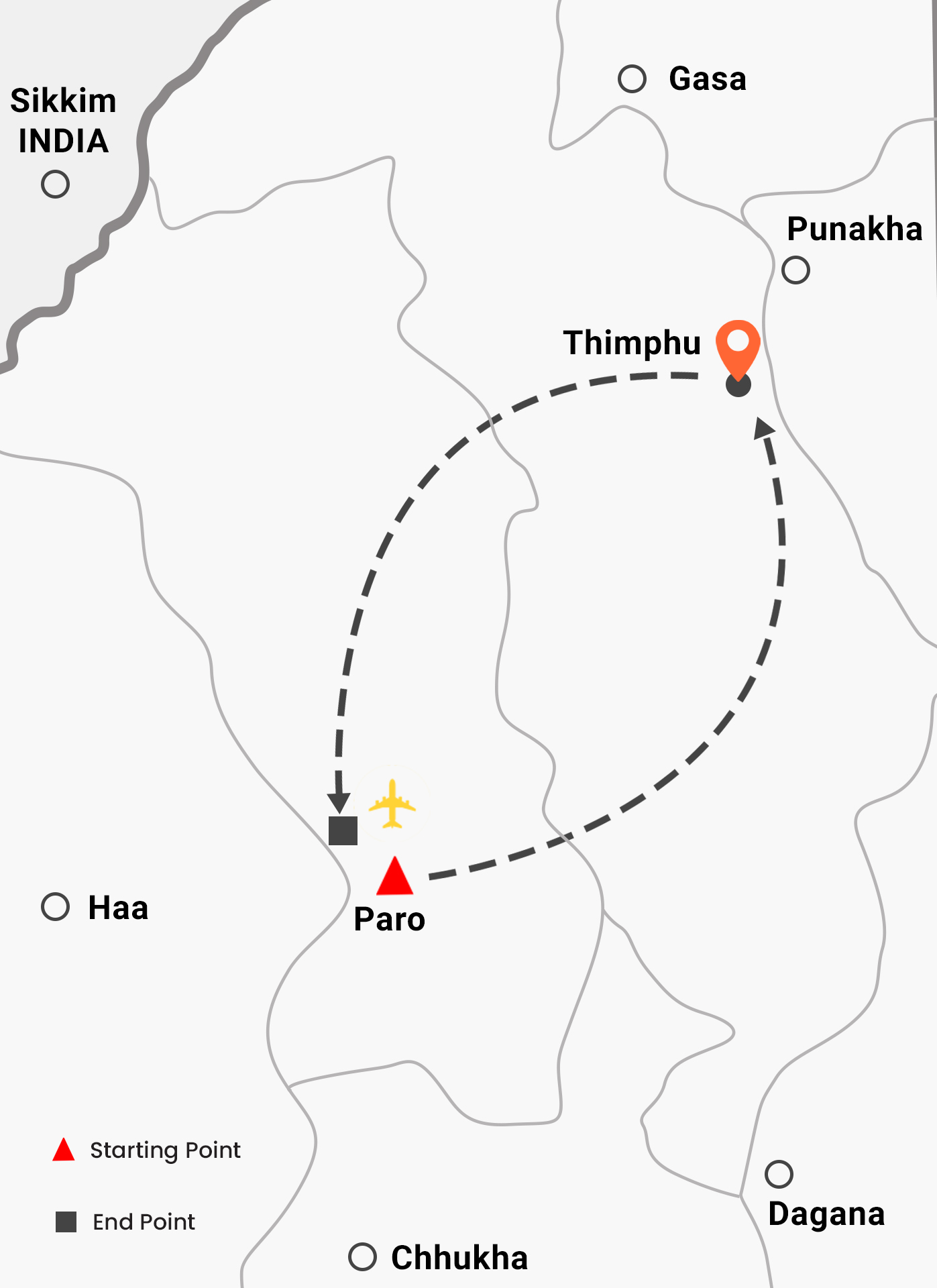 Airport – Thimphu: 50 km (45 mins)