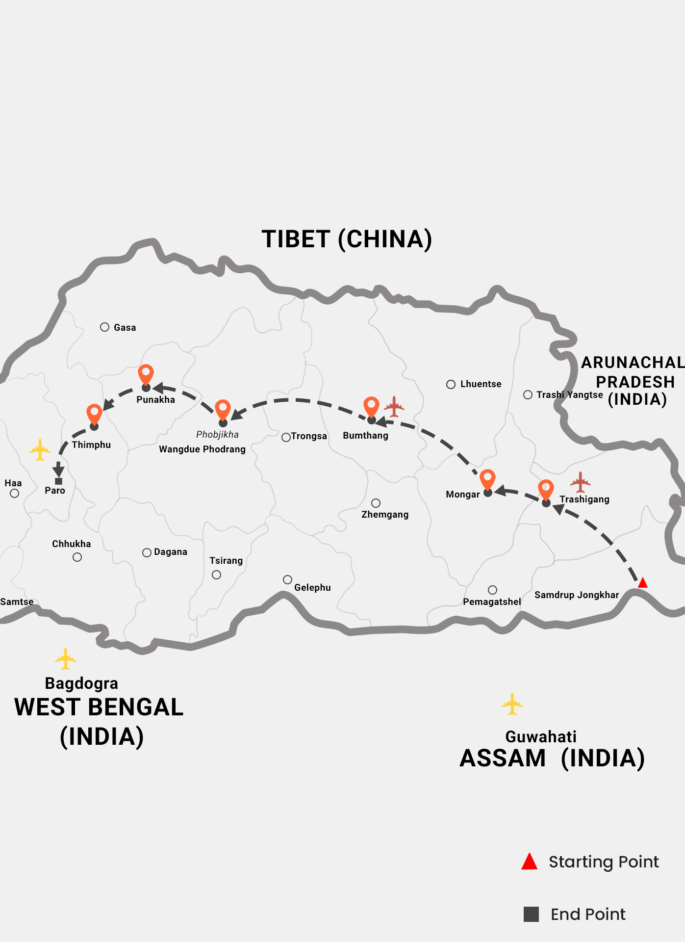 AM/PM: Roll into Bhutan at Samdrup Jongkhar border. Immigration done. Hotel checked-in.